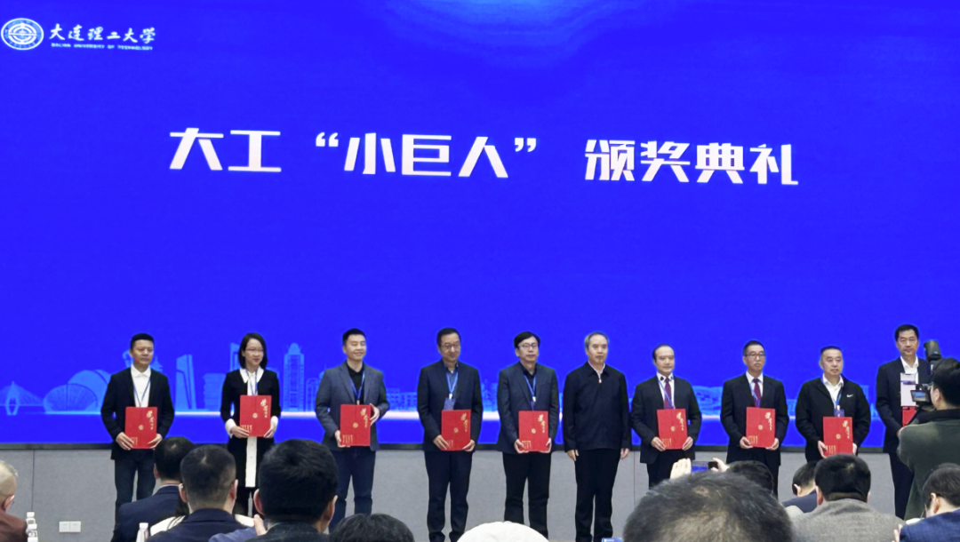 魏國(guó)平教授(右三)在大工“小巨人”頒獎(jiǎng)典禮現(xiàn)場(chǎng)
