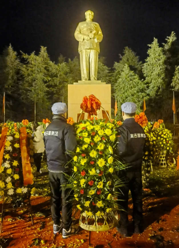奧吉娜集團總裁魏國平博士特選派員工赴韶山?jīng)_,代表奧吉娜集團向紀念毛澤東銅像敬獻花籃祭拜偉人,表達奧吉娜人對這位偉人最崇高的敬意和最深切的懷念。